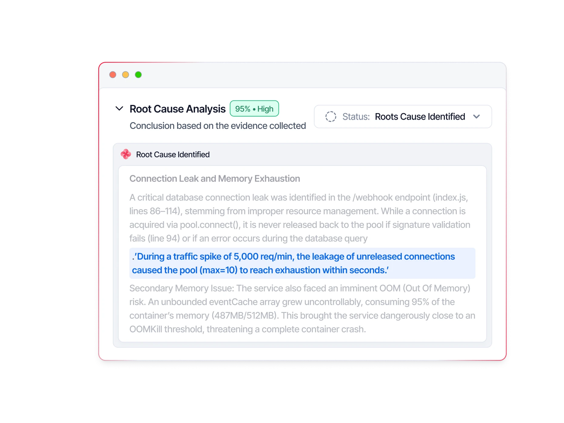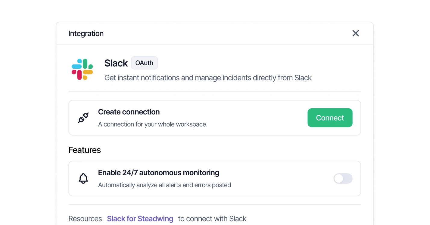 Steadwing diagnoses issues instantly, correlates evidence across your stack, and resolves them. So your team can ship, not firefight.