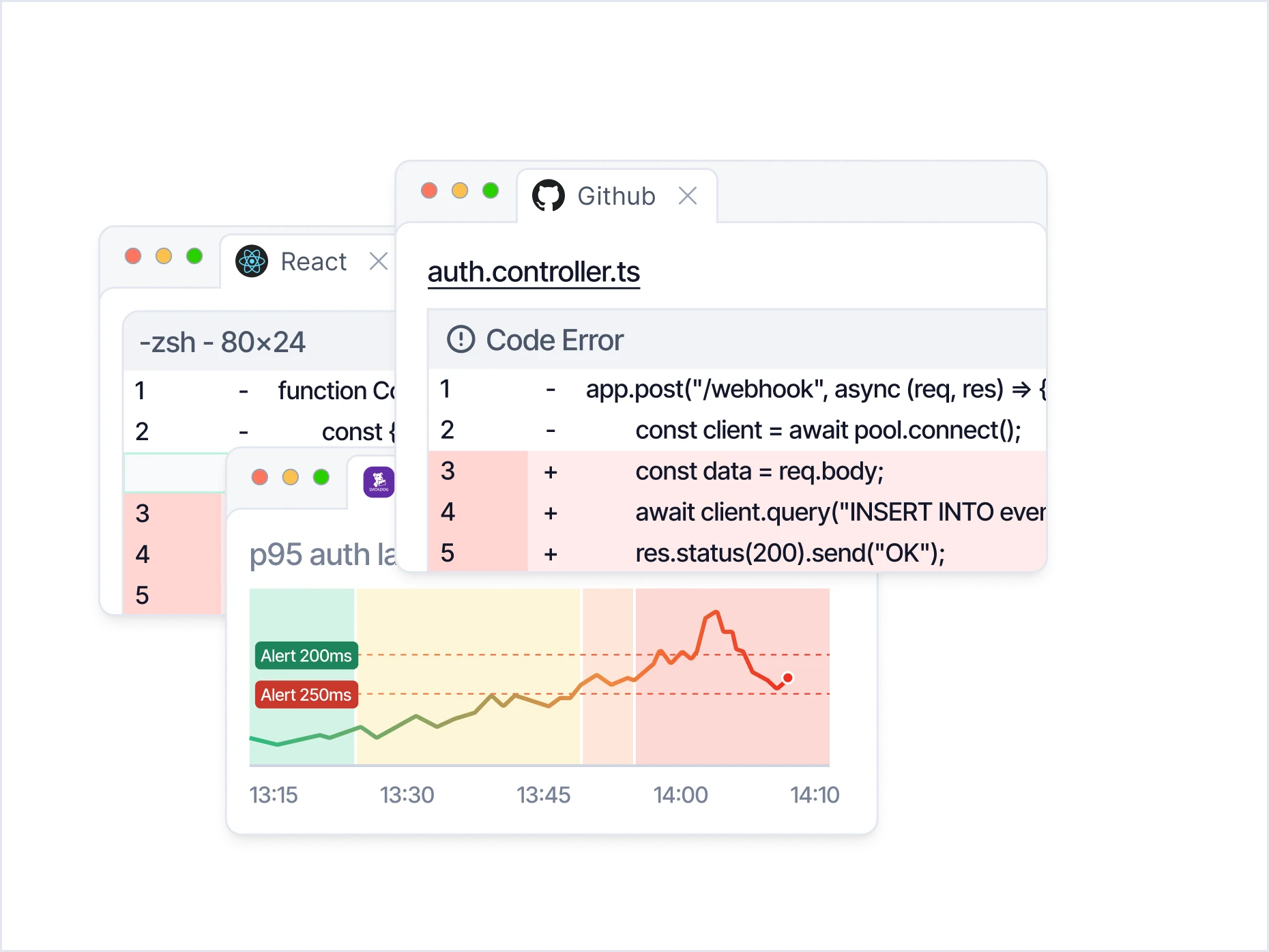 Integrate in minutes. We pull context from Datadog, PagerDuty, Slack, GitHub, and more.